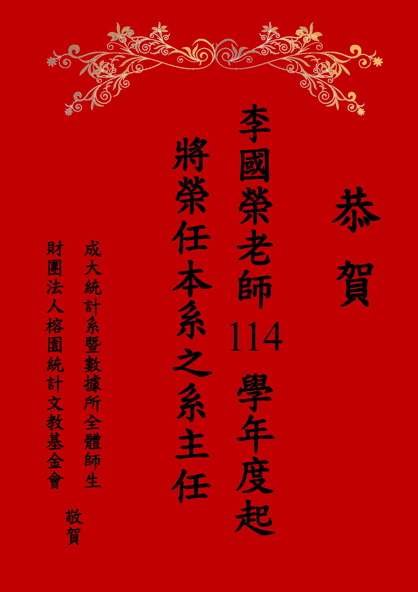 統計系暨數據科學研究所師生全體與財團法人榕園統計文教基金會 謹賀