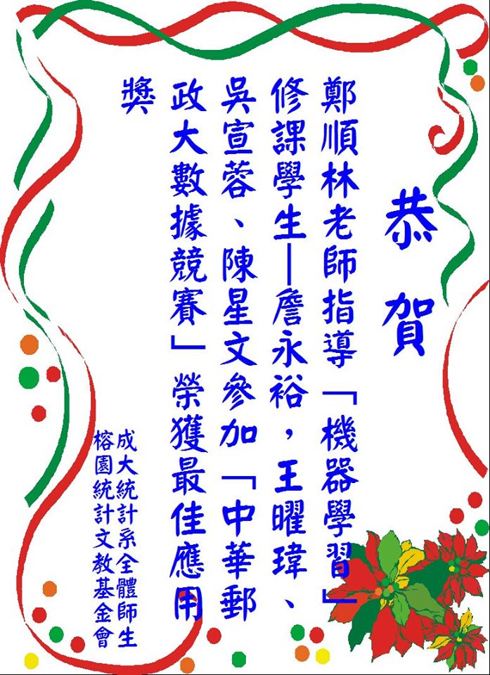 ⌈2019中華郵政大數據競賽⌋ 成大統計系⌈機器學習⌋ 課程修課學生組隊取得第一名!